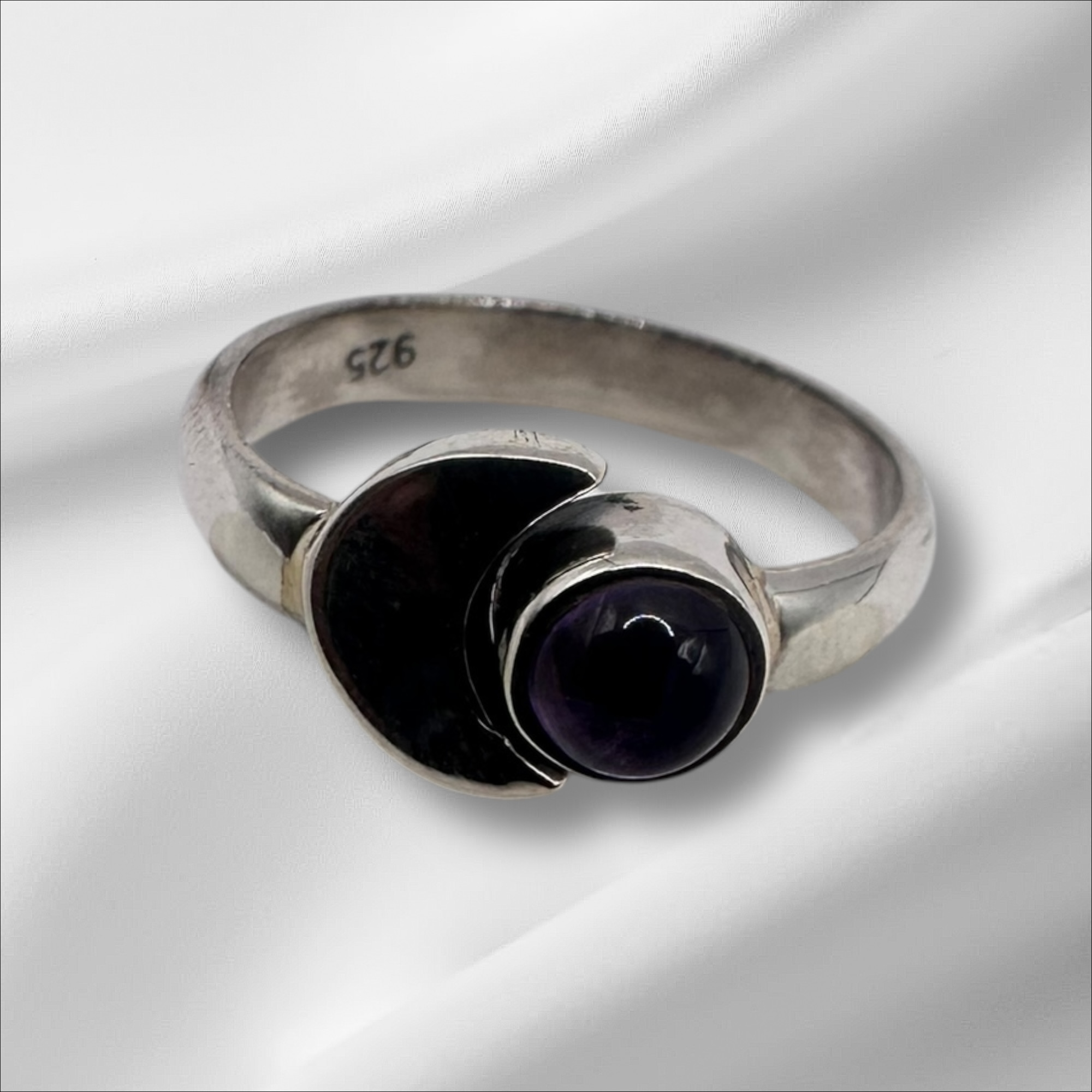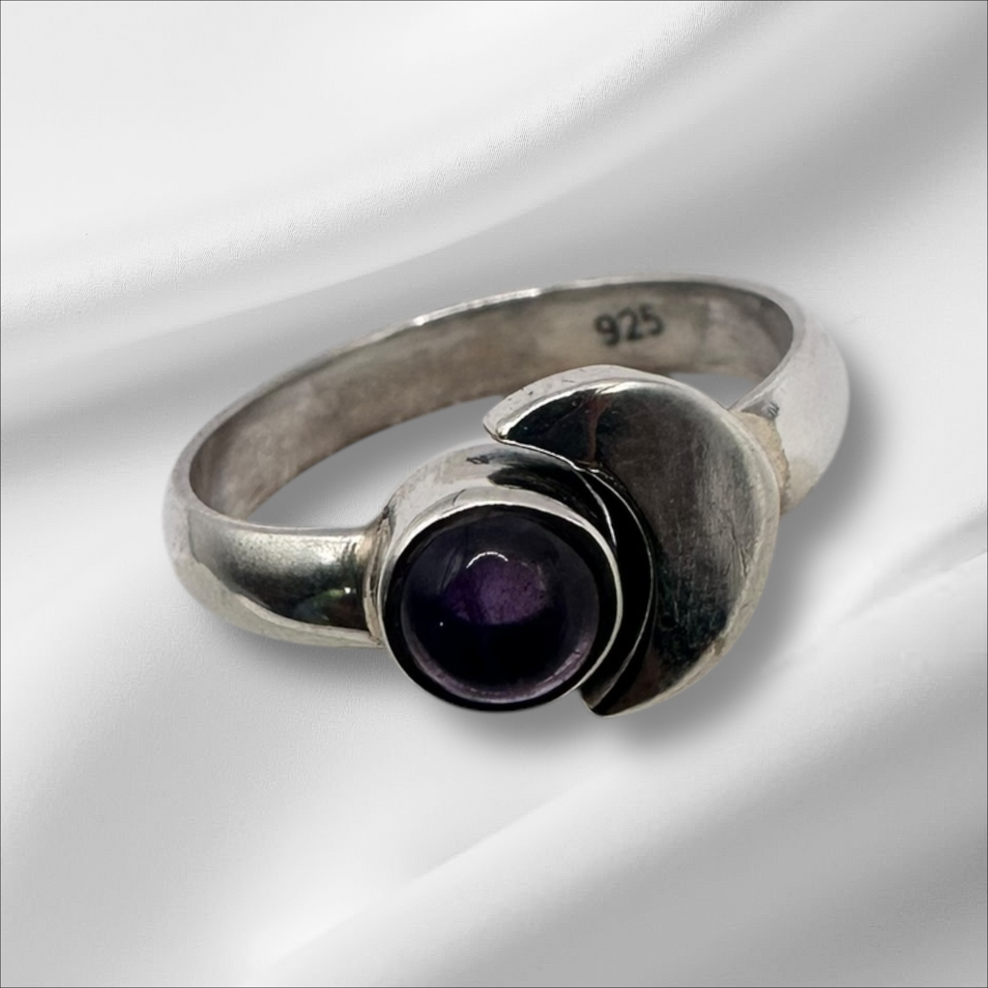 This charming Amethyst Ring features a natural violet amethyst gemstone, weighing 2.956 grams, set in a sleek 925 sterling silver band. The mounted shape stone enhances the rich purple color of the amethyst, making it an eye-catching centerpiece. With a hardness of 7 on the Mohs scale, the natural amethyst is durable for everyday wear, offering both beauty and strength. Known for its calming properties, Amethyst is believed to promote relaxation, balance, and spiritual growth, making it a meaningful and stylish choice for any jewelry collection.