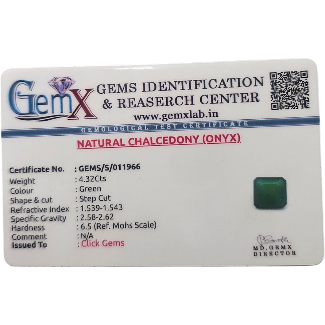 Elevate your collection with this 4.42-carat Natural Aqiq (Onyx)—a gemstone of strength, protection, and spiritual harmony. Its deep green hue and expertly crafted step-cut shape create a mesmerizing play of light, making it an exceptional choice for elegant jewelry.