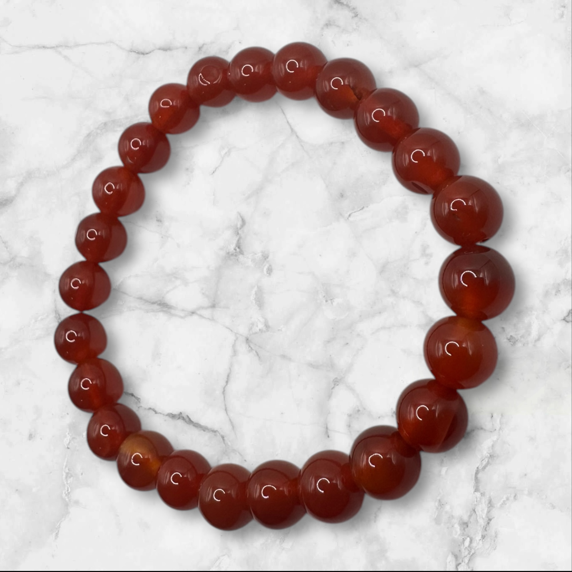 This stunning Aqiq Stone (Carnelian) bracelet features round beads with a warm, rich orange-red hue. Known for its energetic and revitalizing properties, Carnelian is believed to enhance creativity, courage, and motivation. The bracelet’s stretchable design ensures a comfortable and adjustable fit, making it an ideal accessory for daily wear. With its vibrant color and powerful symbolism, this Carnelian bracelet is perfect for anyone looking to add both a stylish and meaningful piece to their jewelry collection.