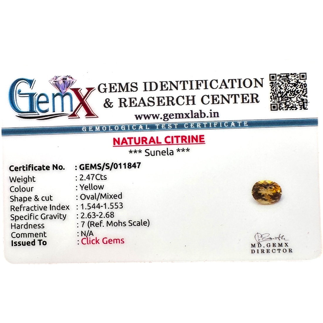 Glow with the radiance of the sun with this 2.47-carat Natural Citrine, a gemstone symbolizing joy, prosperity, and positive energy. Its golden-yellow hue and exquisite oval/mixed cut create a dazzling sparkle, making it a captivating choice for any jewelry piece.