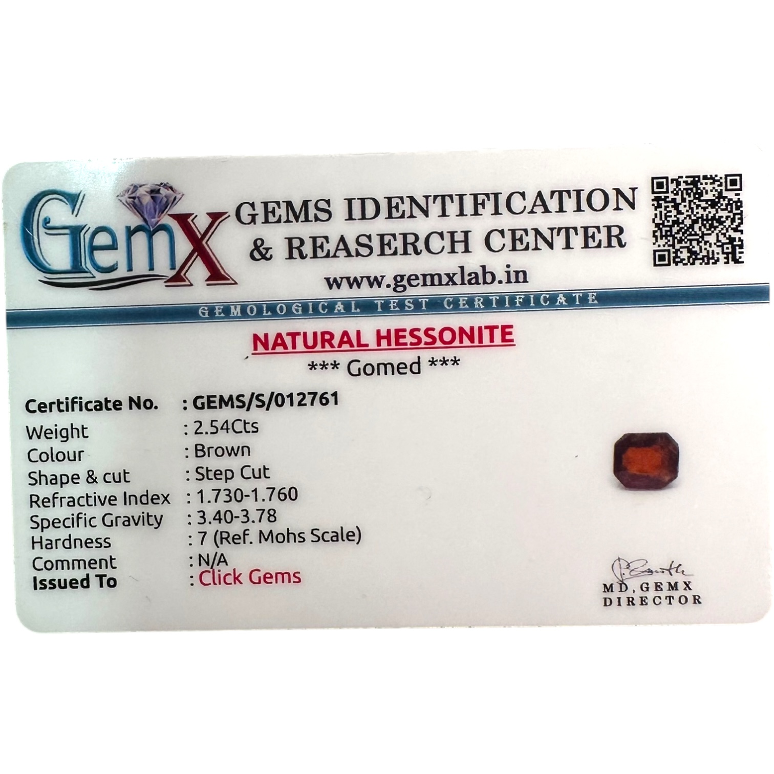 A stunning 2.54 carat natural Hessonite Garnet in Step Cut cut, glowing with earthy brown tones. Perfect for bold jewelry or mindful wear. GEMX certified and cut for elegance.
