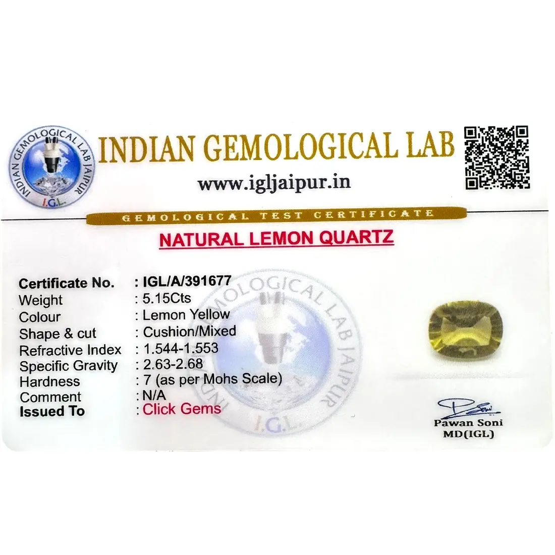 Product Specification for Lemon Quartz – 5.15 Carat