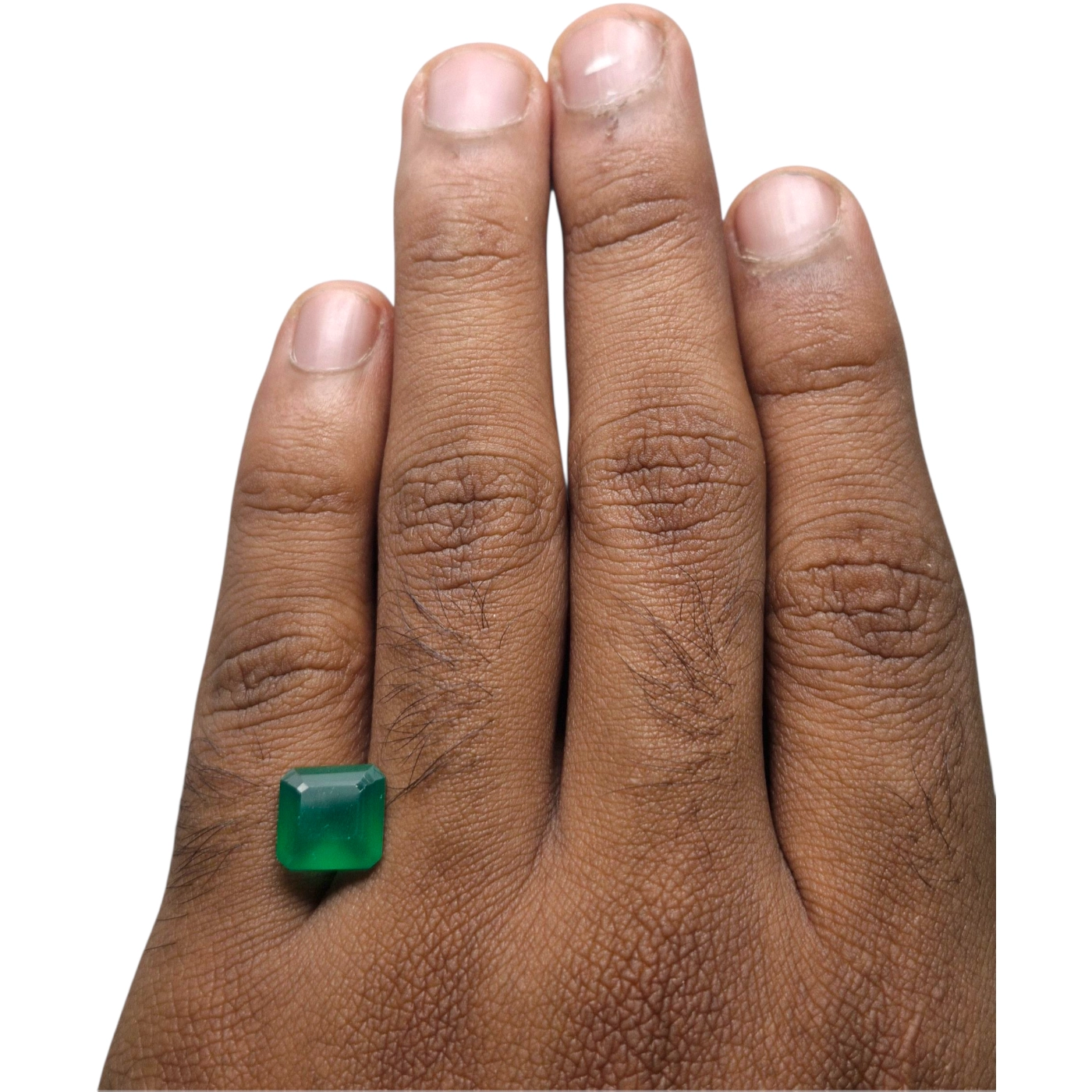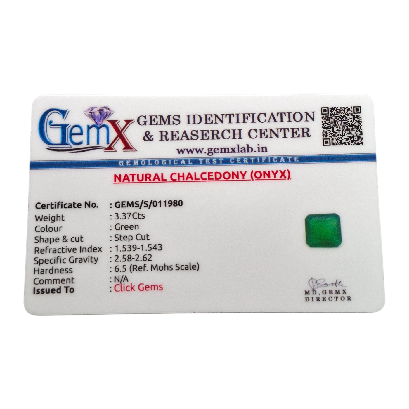 Elegant green Natural Aqiq (Onyx), step cut and GEMX certified, perfect for calm and balance.