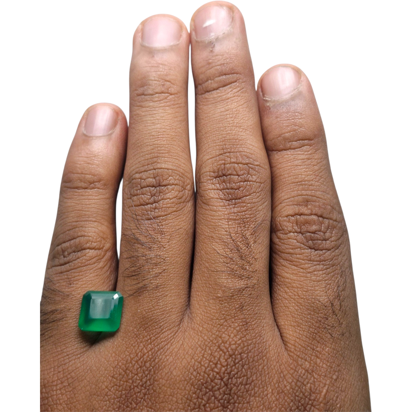 Elegant green Natural Aqiq (Onyx), step cut and GEMX certified, perfect for calm and balance.