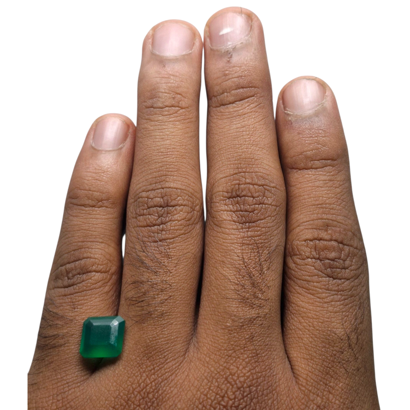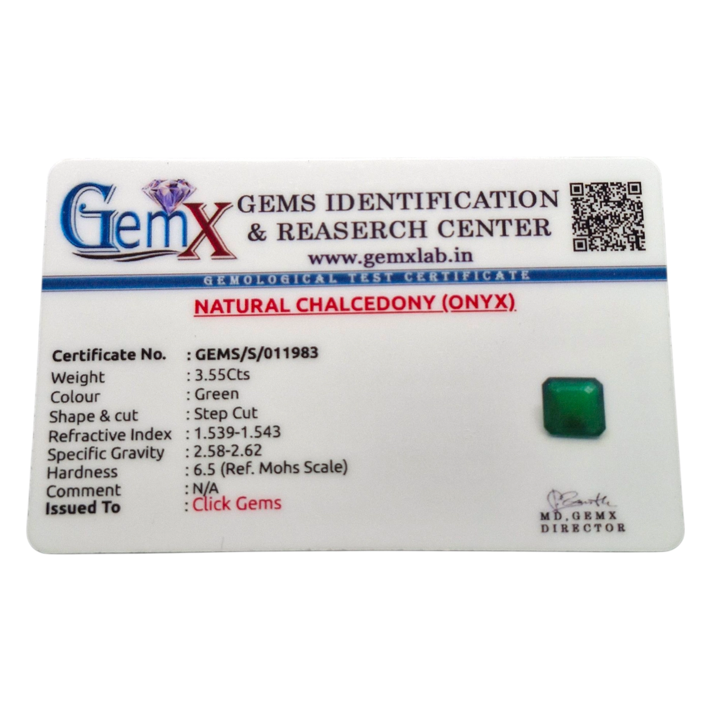 Elegant green Natural Aqiq (Onyx), step cut and GEMX certified, perfect for calm and balance.