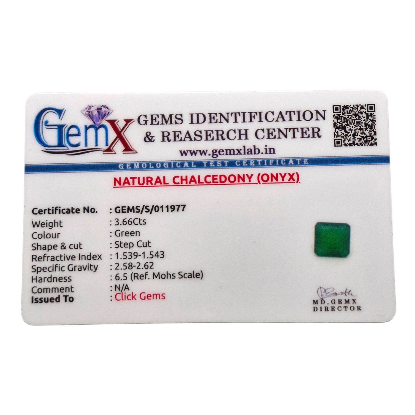 Elegant green Natural Aqiq (Onyx), step cut and GEMX certified, perfect for calm and balance.