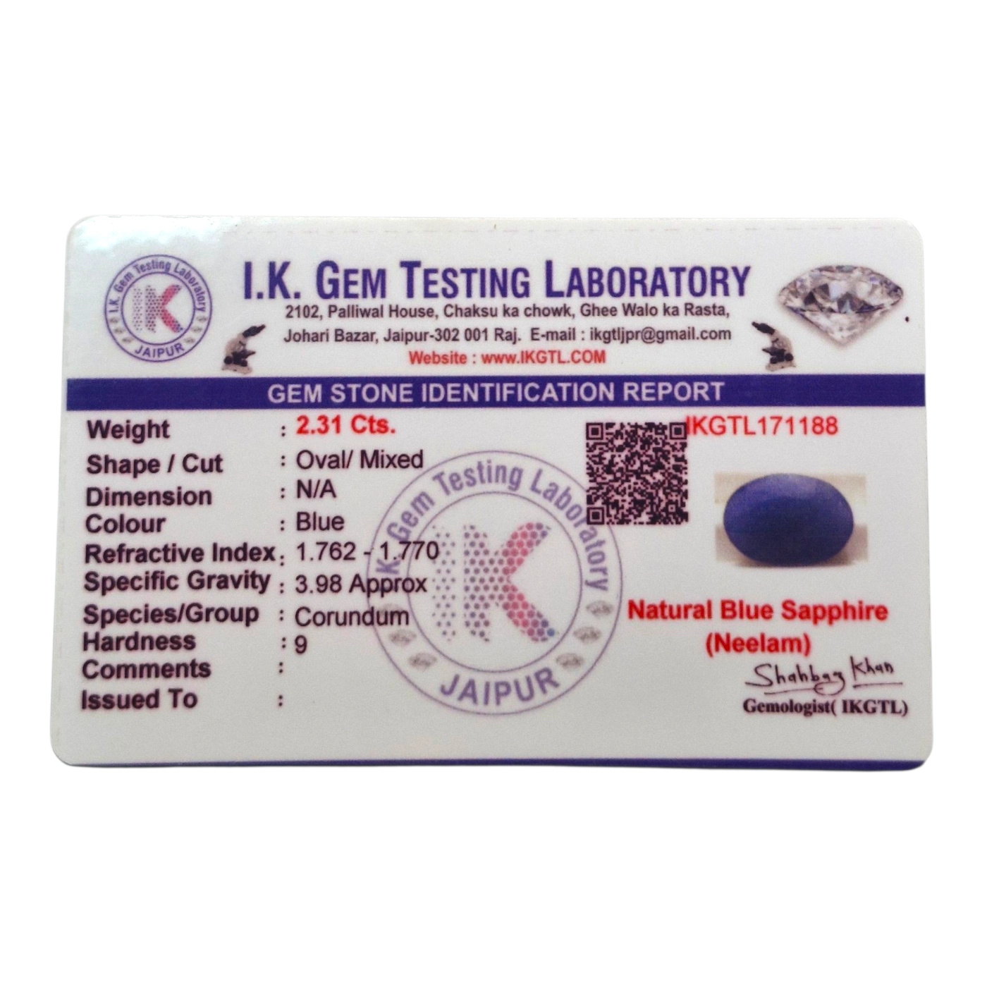 2.31 ct – sleek, serene, and stunningly deep blue for refined wear.