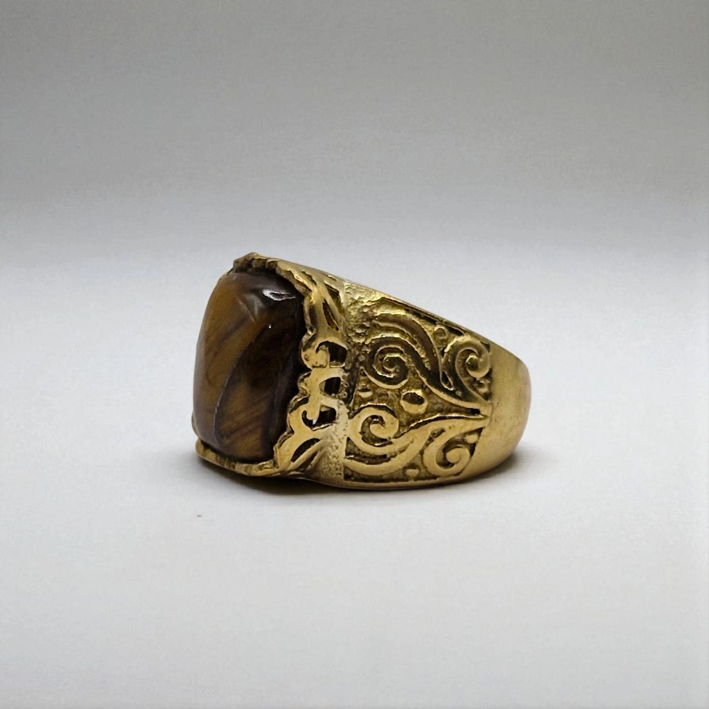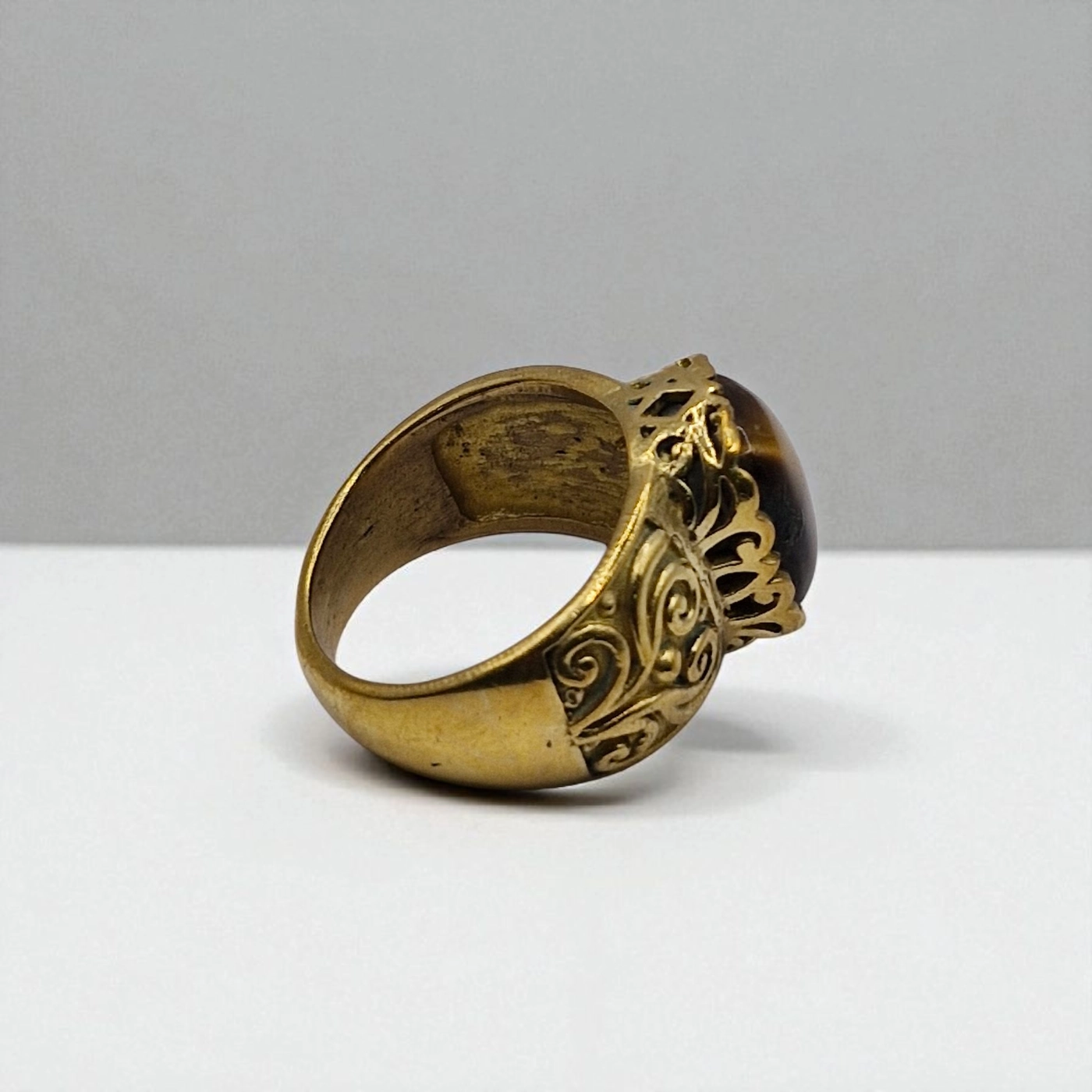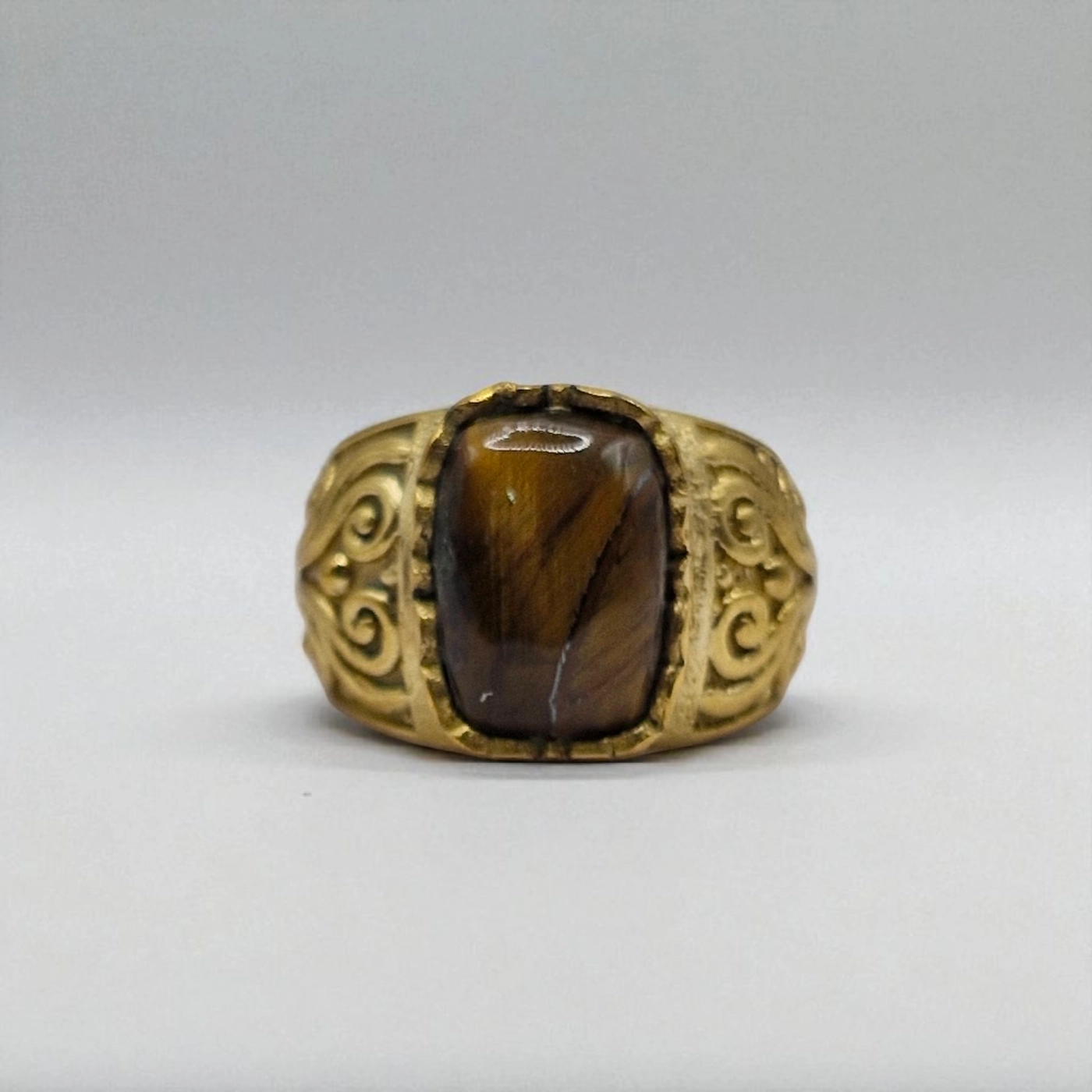 Natural Tiger’s Eye Metal Ring – Size 19
