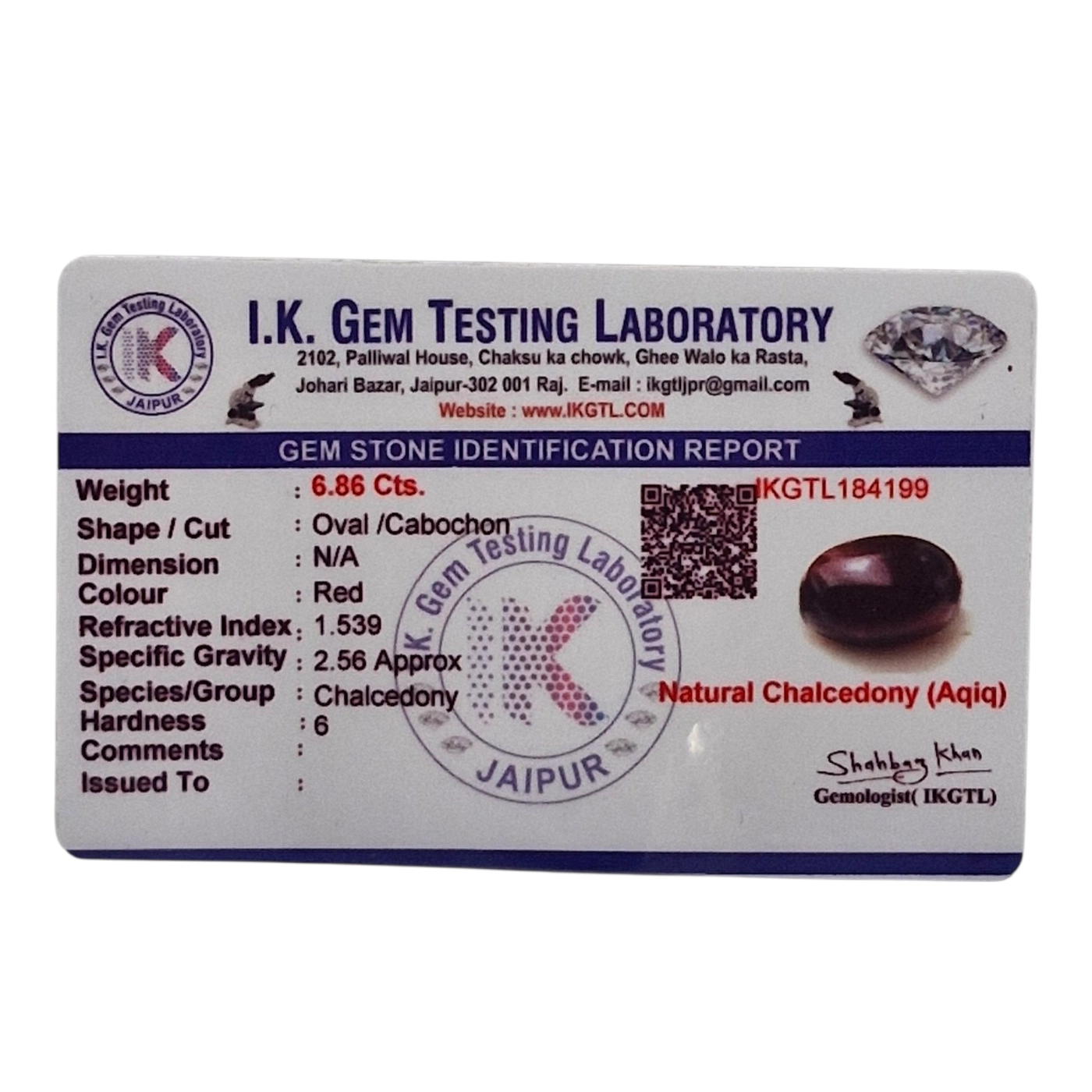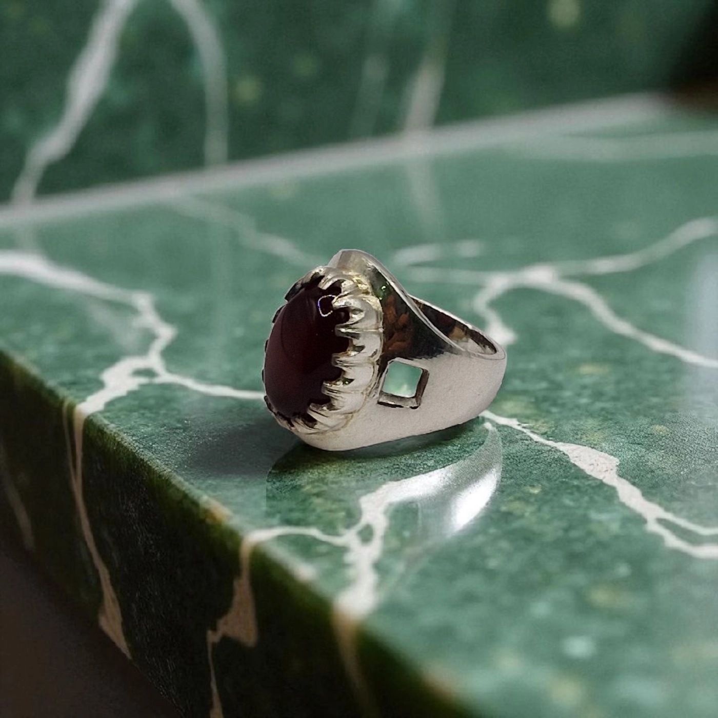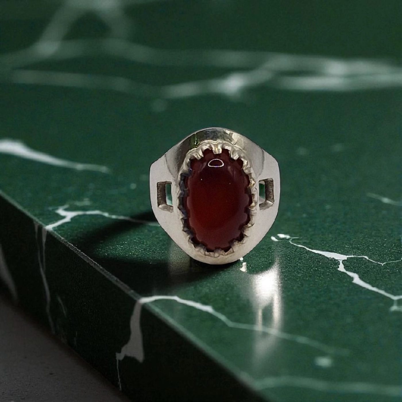 Natural Yamani Aqiq Silver Ring – Size 14 – 6.86 ct, Brownish Red colour. Lab-tested certificate included.