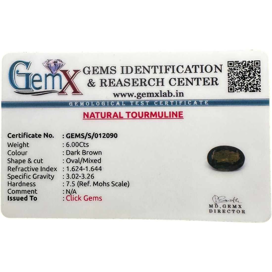 This beautiful Tourmaline gemstone weighs 6.00 carats and showcases a rich dark brown color, adding a touch of sophistication and elegance. The deep, earthy tone of this stone makes it an exceptional choice for creating statement jewelry that exudes refinement. With a Mohs hardness of 7 to 7.5, this Tourmaline offers both durability and long-lasting beauty, making it ideal for custom rings, pendants, and necklaces. Known for its grounding properties, this gemstone is perfect for those seeking a piece that combines elegance with meaning.
