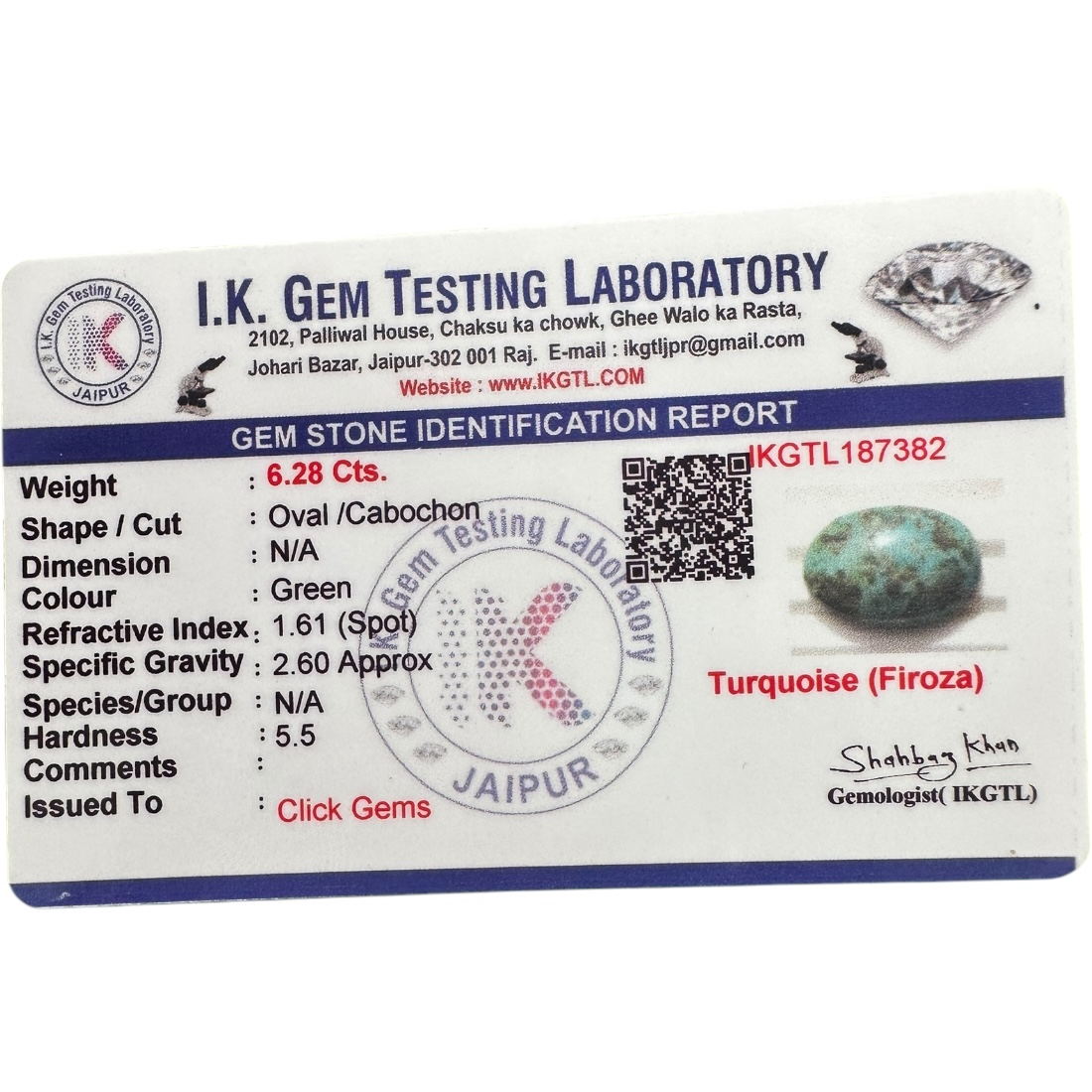 This stunning Turquoise Hussain gemstone weighs 6.28 carats and showcases a vibrant green color that embodies natural elegance. The smooth oval shape accentuates the gemstone’s striking hue, making it a perfect addition to any jewelry piece. With a Mohs hardness of 5.5, this Iranian Fairosa turquoise offers a delicate yet durable quality, making it ideal for creating timeless jewelry designs. Renowned for its protective and healing properties, this gemstone is perfect for crafting bracelets, pendants, and necklaces that bring both beauty and spiritual significance.